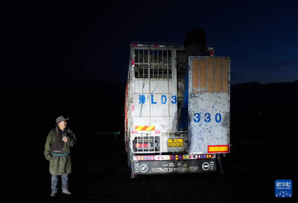 3月7日,从借牧点转运羊群的车辆回到青海省海北藏族自治州祁连县阿柔乡草大板村。新华社记者 张龙 摄